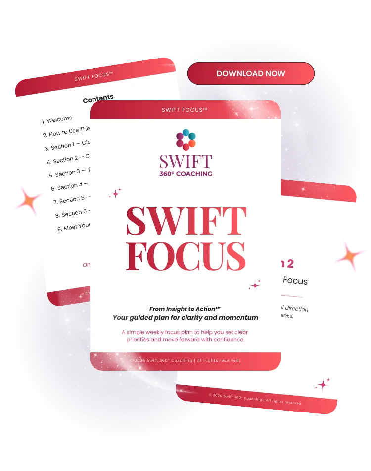 Swift Focus™ is a structured clarity-to-action sprint designed to help you turn insight into focused, confident steps over the next 1–2 weeks.